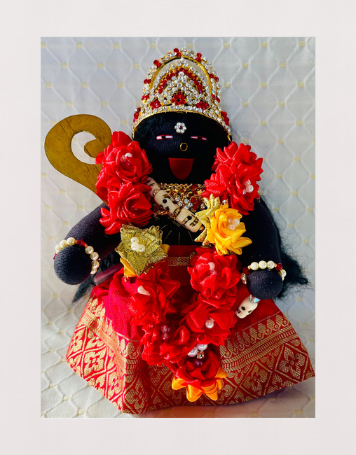 Kali représente l’aspect féroce de Devi. D’un teint sombre, ses trois yeux voient le passé, le présent et l’avenir. Kali élimine la peur et stimule la force spirituelle. Elle aide à la destruction des forces négatives, de la faiblesse et de la mesquinerie. Ses dévots sincères la vénèrent sous son aspect très aimant et protecteur. L’amour de Kali est égal à sa colère. Il est sans limite, éternel. Ses dévots l’aiment donc éternellement, à l’infini.
